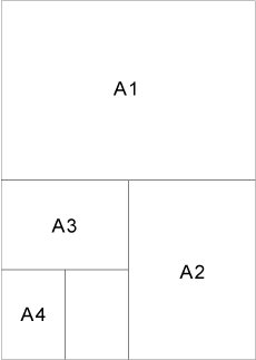 0309所谓A4就是一种纸张规格。一张大纸对折切开,得到的两片纸称为A1,A1再对折切开称为A2,以此类推。A4就是对折切开4次后的大小。关系如下右图。还有一种B类分割法,B4比A4要大一些。不过由于A4幅面比较适合阅读和携带,因此一般的办公用纸和大部分的书籍都采用A4。